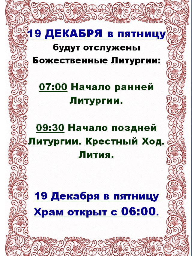 19.12.2025Престольный праздник 19.12.2025