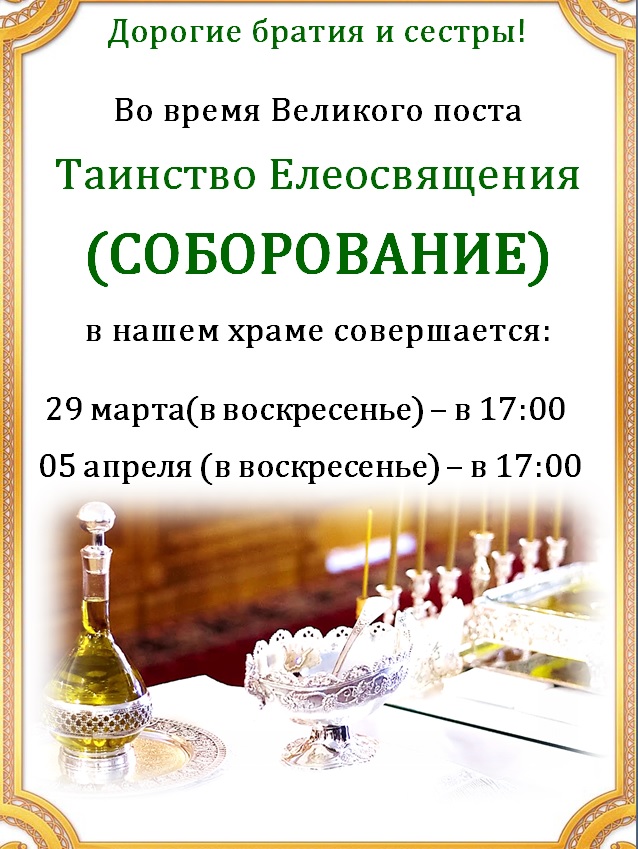 29.03.2026СОБОРОВАНИЕ ВЕЛИКИМ ПОСТОМ